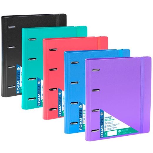 · Carpeblock de polipropileno extra rígido y ultra ligero FOAM 2 mm de grosor. · Con 4 anillas mixtas de 35 mm y sistema rado. · Lomo curvo más ergonómico para apertura 360º. · Con goma plana a juego . Incluye recambio de 100 hojas 90grs, cuadricula 5x5 con lomo de colores. · Incluye sobre de PP con solapa y velcro de cierre ideal para guardar pequeños objetos como bolígrafos, tarjetas de transporte, monedas, etc. · Incluye 4 separadores. Este producto se vende en paquetes de 8 unidades.
