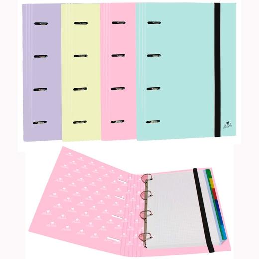 MARIOLA CARPETA ANILLAS MIXTAS 4 X 25MM CARPEBLOCK C/RECAMBIO 100H A4 C/GOMA 6 SEPARADORES CARTÓN FORRADO C/SURTIDOS PASTEL