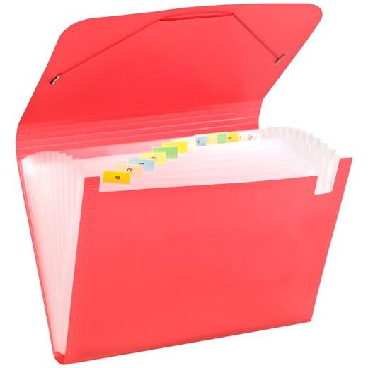 CARCHIVO CLASIFICADOR ACORDEÓN FOLIO 13 DPTOS C/GOMA PP TRANSLÚCIDO ROJO