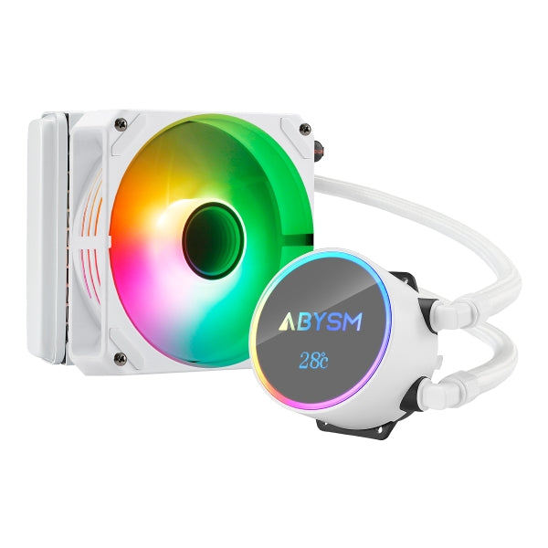 RTIC White 120 ARGB de ABYSM es un sistema de refrigeración líquida all-in-one equipado con un ventilador ARGB, con efecto túnel, de 120 mm y una iluminación espectacular.