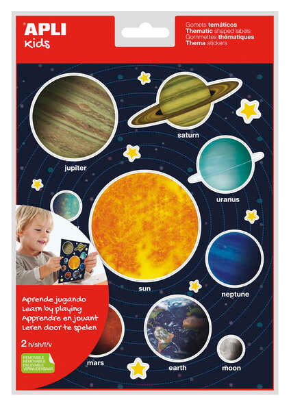 Apli Bolsa de Gomets Tematicos Sistema Solar - 40 Gomets en 2 Hojas - Adhesivo Removible - Ayuda Al Aprendizaje Visual y Motor - Cumple Normas EN-71 y FSC - 100% Reciclable - Colorido