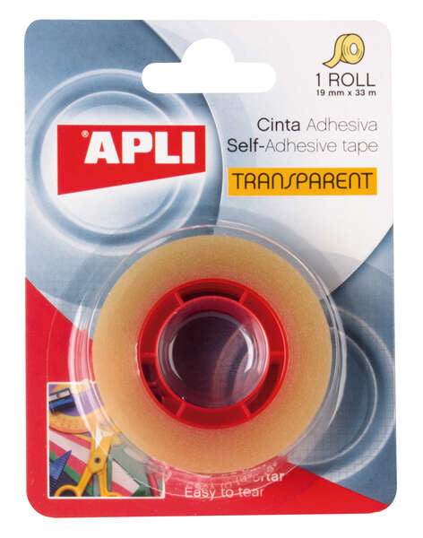 Apli Cinta Adhesiva Transparente 19mm x 33m - Resistente al Agua y a la Humedad - Facil de Cortar con las Manos - Ideal para Uso en Oficina y Hogar Transparente