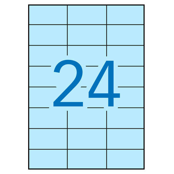 Etiquetas azul pastel cantos rectos tamaño 70,0 x 37,0 mm con adhesivo permanente.