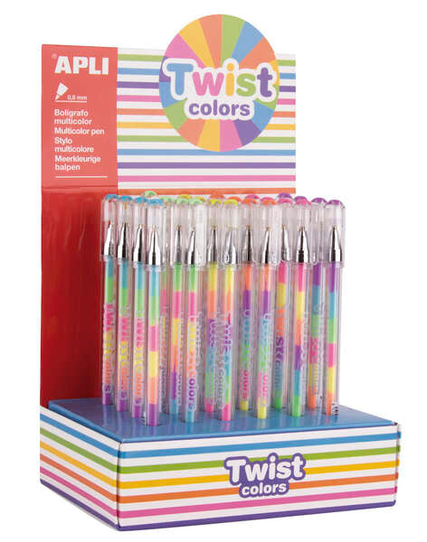Apli Expositor Boligrafos Gel Pen Twist Colors - 0.8mm - Tinta Que Cambia de Color - Acabado Fluor - 24 Unidades - Secado Rapido y Larga Duracion