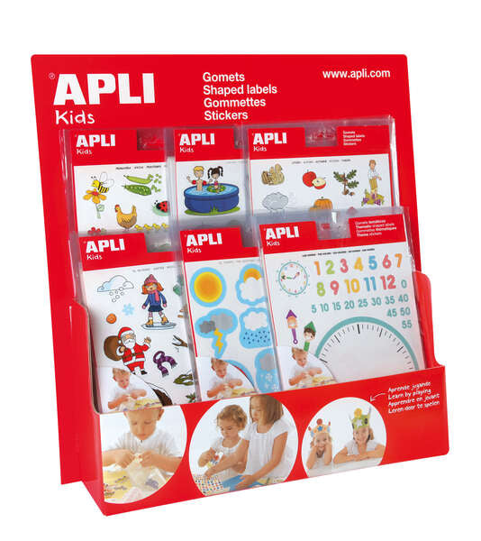 Apli Expositor Gomets Tematicos - Tamaño Mostrador - 60 Bolsas Incluidas - Temas Variados - Colorido
