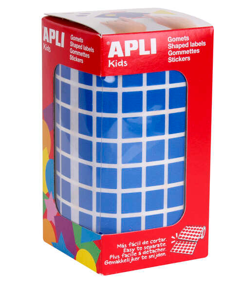 Apli Gomets Cuadrados Azules - 10x10mm - 59 Hojas Pretroqueladas - 6372 Gomets por Rollo - Ideal para Actividades Infantiles