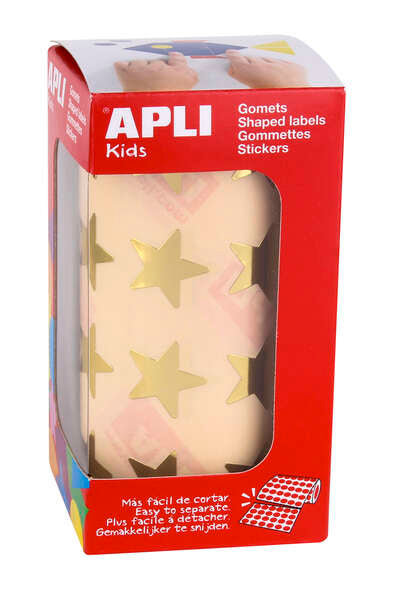 Apli Gomets Estrella Oro Metalizado - Tamaño 19.5mm - Adhesivo Permanente - 1416 Gomets por Rollo - Ideal para Actividades Creativas con Niños