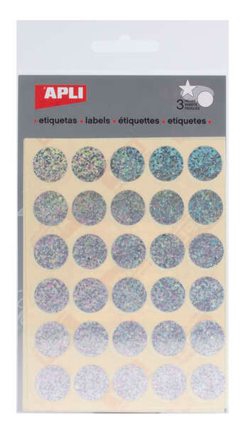 Apli Gomets Redondos Holograficos Ø 20mm - Adhesivo Permanente - 90 Gomets en 3 Hojas - Desarrollo de Habilidades y Creatividad - Normas de Calidad y Seguridad - Reciclables