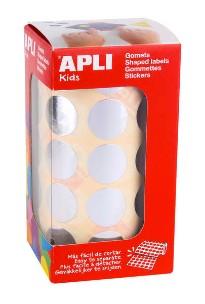 Apli Gomets Redondos Plata Metalizado Ø 20mm - 59 Hojas Pretroqueladas - 1770 Gomets por Rollo - Ideal para Escuelas y Talleres Infantiles - Cumple Normas EN-71 y FSC