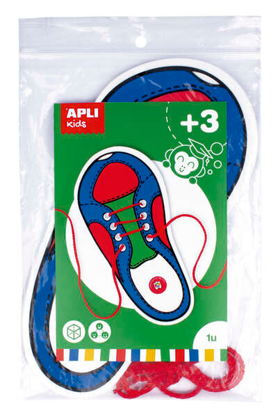 Apli Juego de Aprendizaje para Atar Zapatos - Plantilla de Plastico en Forma de Zapato de 100x210mm - Desarrolla Psicomotricidad Fina y Coordinacion Mano-Ojo - Cordon Rojo