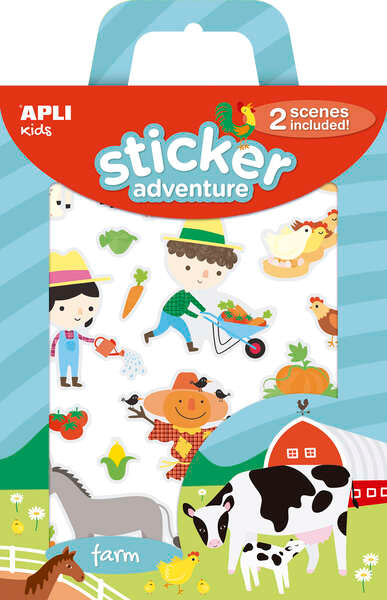 Apli Juego de Pegatinas de Papel Granja - 2 Escenarios 45x20cm - 42 Gomets Removibles - Formato Reducido con Cajita Asa - Ideal para Niños 3+ - Colorido