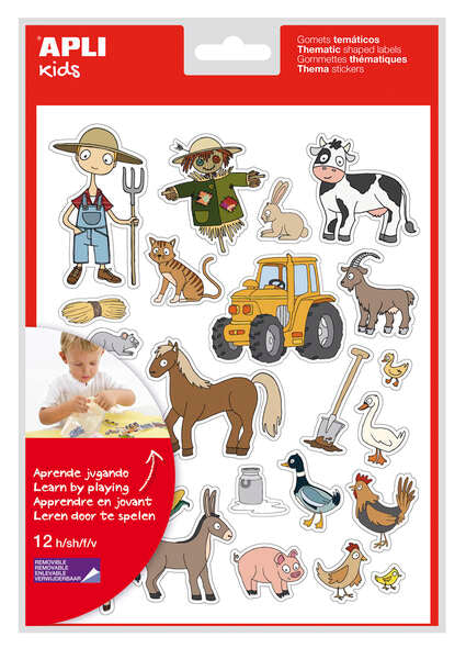 Apli Kids Pack de 276 Gomets Tematicos La Granja - Adhesivo Removible a Base Agua - Libre de Disolventes - Ideal para Escuelas - Divertidas Ilustraciones