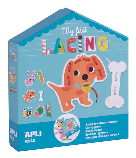 Apli Myfirstlacing - Juego de Enhebrar para Niños - Fomenta la Motricidad Fina y la Coordinacion Ojo-Mano - Incluye Cordones y Tarjetas con Dibujos para Enhebrar