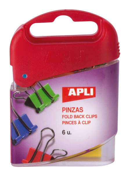 Apli Pack de 6 Pinzas Abatibles 19mm - Acero Templado - Asas Niqueladas - Sujecion hasta 50 Hojas - Colores Surtidos