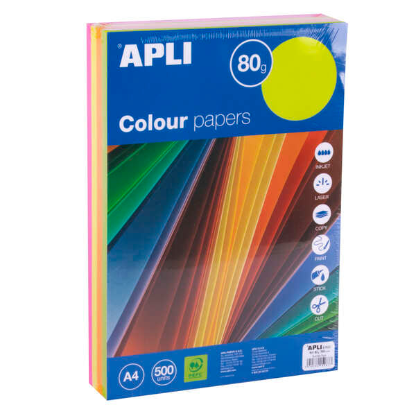 Apli Papel Color Surtido Fluorescente A4 500 Hojas