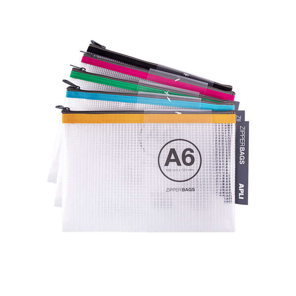 Apli Sobres Porta-Todo de Goma Eva Transparente - Tamaño A6 (168x125mm) - Cierre de Cremallera - Colores Surtidos