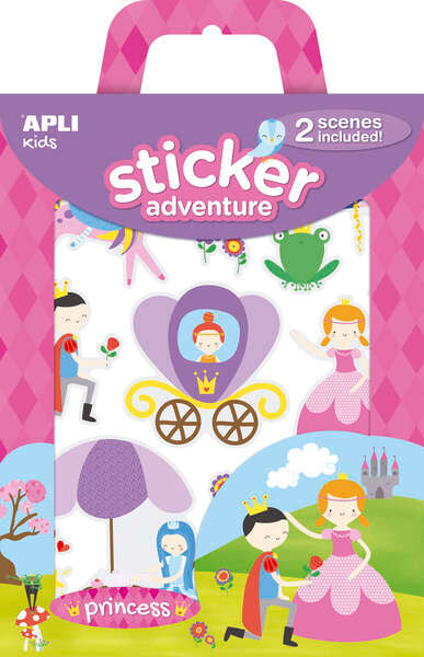 Apli Sticker Adventures Pack de 39 Pegatinas de Papel Tematica Princesas - 2 Escenarios 45x20cm - Formato Reducido con Cajita Asa - Ideal para Niños a Partir de 3 Años