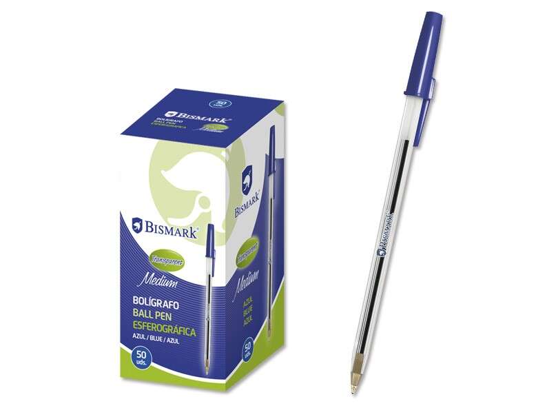 Bismark Boligrafo de Bola - Punta Redonda - Capuchon y Tapon del Color de la Tinta - Color Azul - Cantidad: 50