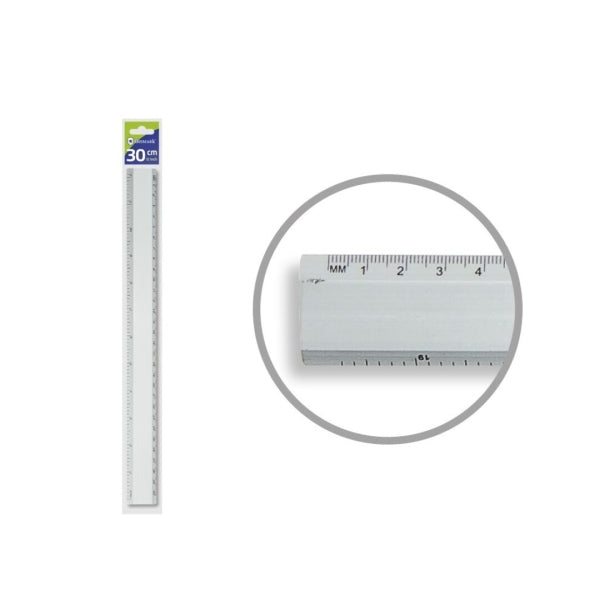 Bismark Regla Milimetrada 30cm - Fabricada en Aluminio - Con Bisel para las Lineas a Tinta - Color Aluminio