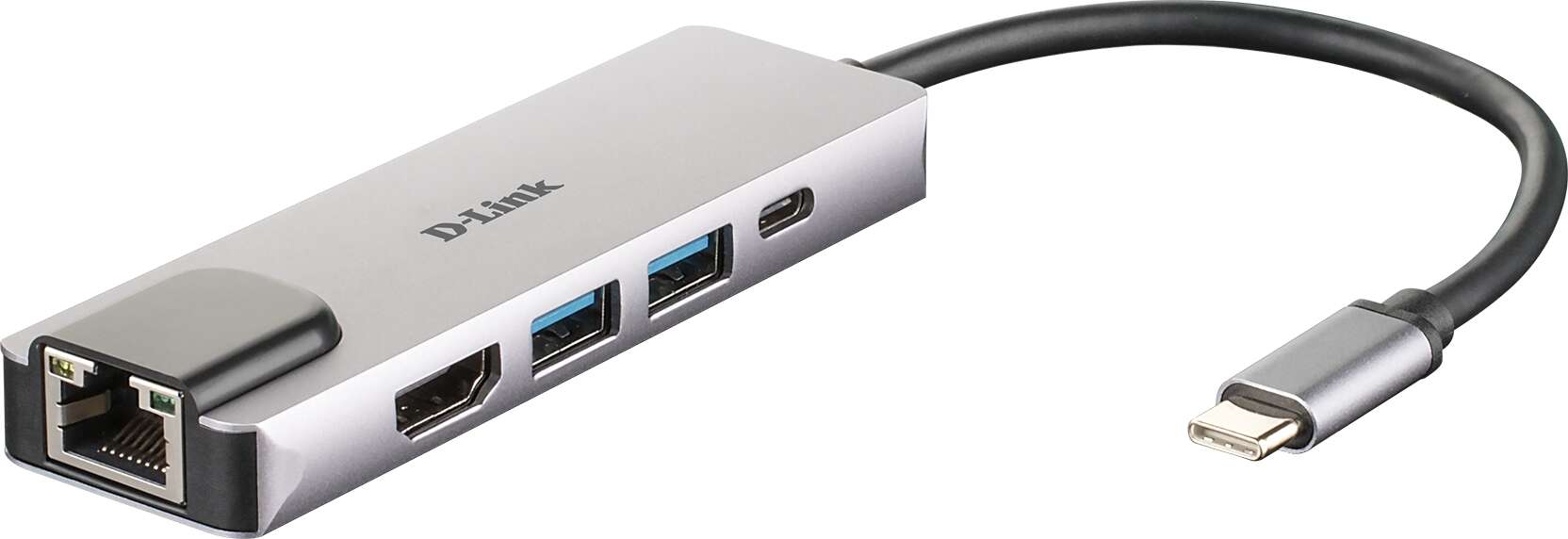 D-Link Hub USB?C 5 en 1 2 Puertos USB 3.0 + 1 HDMI + 1 RJ45 - Plug & Play
