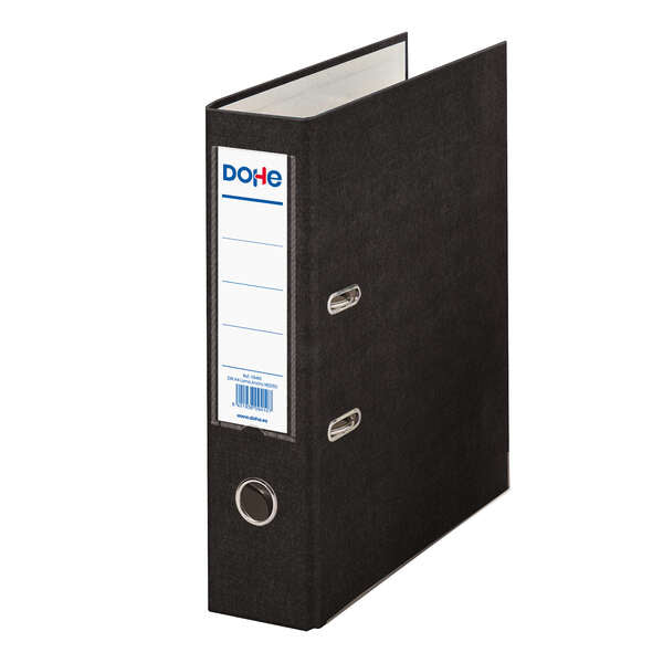 Dohe Archivador de Palanca Tamaño A4 - Lomo Ancho 70mm - Ollao, Rado y Tarjetero en el Lomo - Carton Forrado con Polipropileno - Cantoneras Metalicas - Color Negro