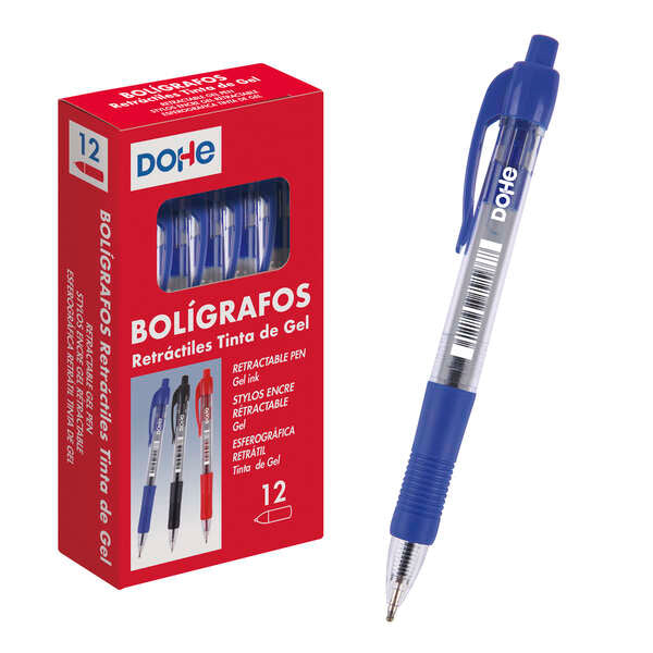 Dohe Boligrafos Retractiles de Tinta de Gel Permanente - Punta Bola de 0.7mm - Trazo de 0.4mm - Resistente al Agua - Cuerpo de Plastico - Grip de Caucho - Caja de 12 Uds