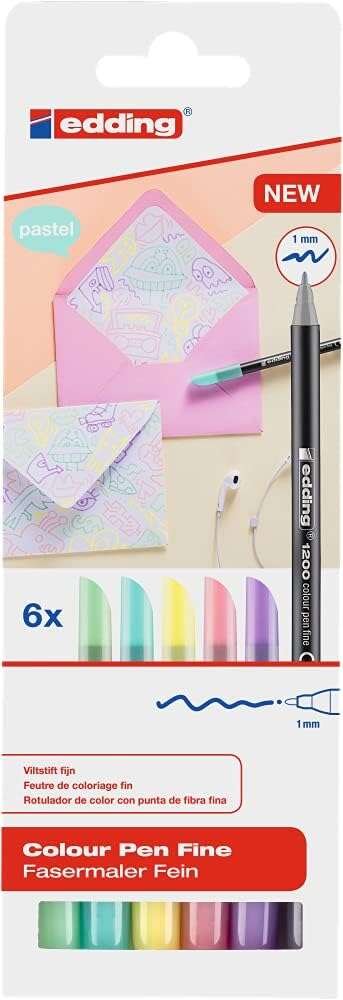 Edding 1200 Pastel Pack de 6 Rotuladores - Punta Redonda - Trazo 1mm - Tinta con Base de Agua - Colo