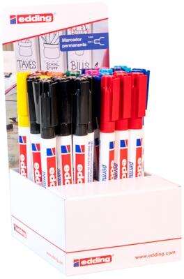 Edding 400 Expositor de 30 Rotuladores Permanentes - Punta Redonda - Trazo 1mm - Recargable - Secado Rapido - Colores Surtidos