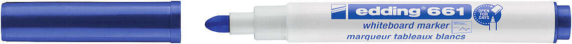 La tinta del marcador para pizarras blancas edding 661 es resistente a la acción de la luz y se seca rápidamente sobre pizarras blancas y pizarras de planificación, así como sobre prácticamente cualquier superficie no porosa, como esmalte, vidrio o melamina.