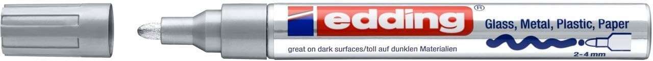 Edding 750 Rotulador Permanente - Punta Redonda - Trazo entre 2 y 4 mm. - Tinta Opaca - Secado Rapido - Color Plata - Cantidad: 10