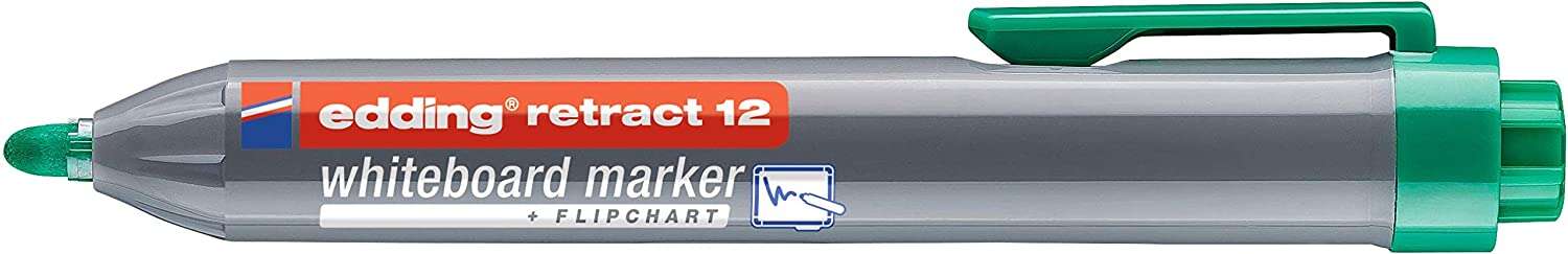 Edding Retract 12 Rotulador para Pizarra Blanca Retractil - Punta Redonda - Trazo entre 1.5 y 3mm - Recargable - Secado Rapido - Color Verde - Cantidad: 10