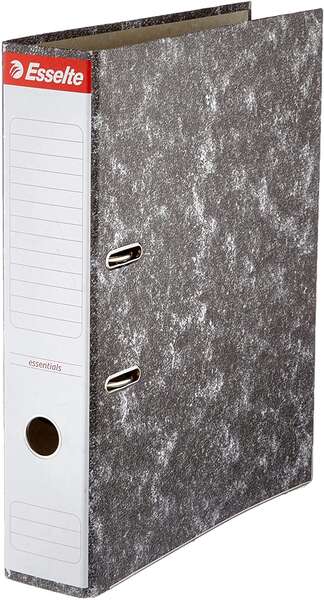 Esselte Archivador de Palanca Formato Folio - Lomo 75mm - Capacidad para 500 Hojas - Color Negro Jaspeado - Cantidad: 20