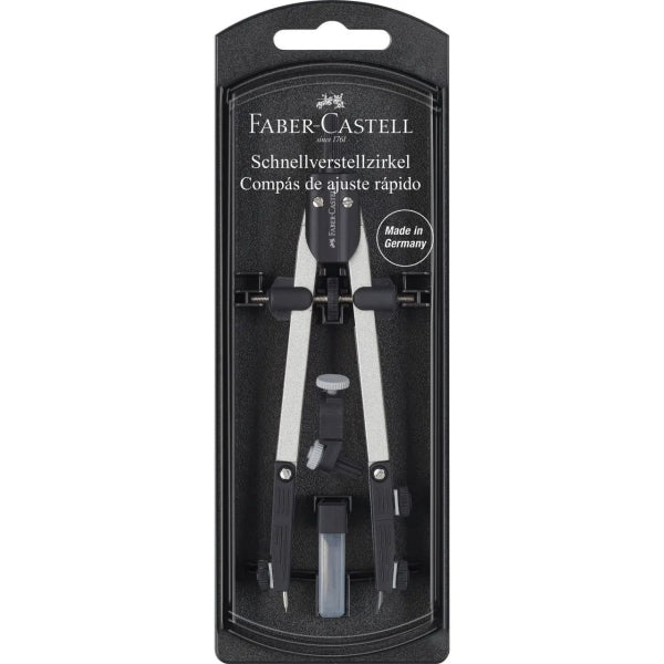Faber-Castell Compas de Ajuste Rapido - Articulaciones en ambos Brazos - Accesorios de Recambio - Adaptador Universal