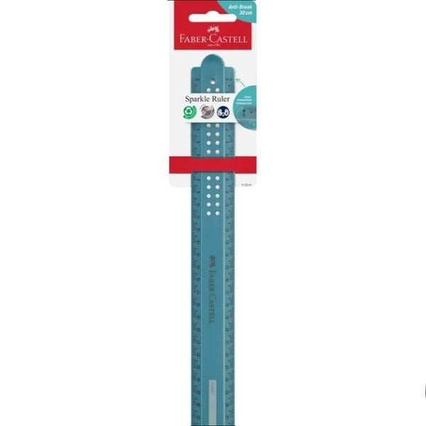 Faber-Castell Sparkle Regla Recta 30cm - Panel para Nombre - Escalas para Zurdos y Diestros - Color Verde Oceano