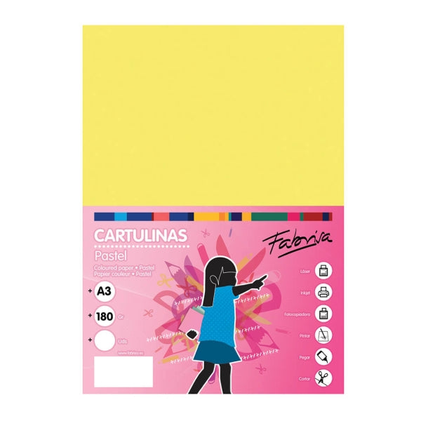 Fabrisa Pack de 25 Cartulinas 180 g/m² - Tamaño A3 - Color Amarillo