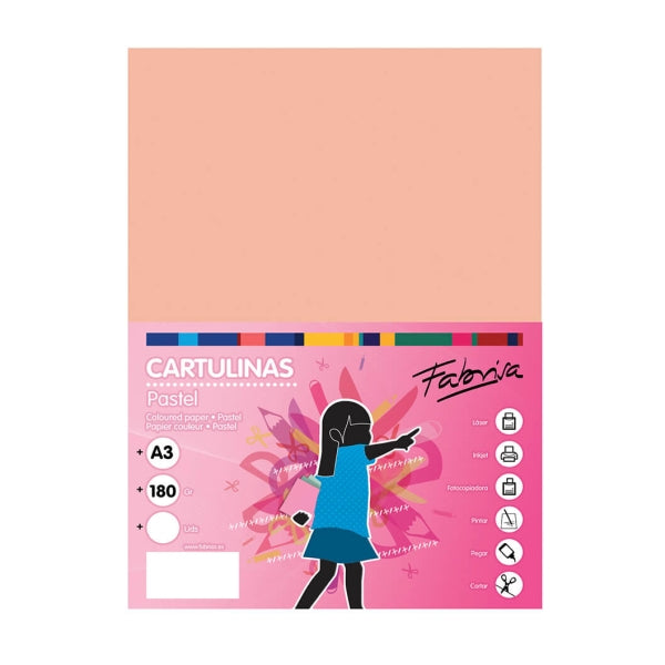 Fabrisa Pack de 25 Cartulinas 180 g/m² - Tamaño A3 - Color Salmon