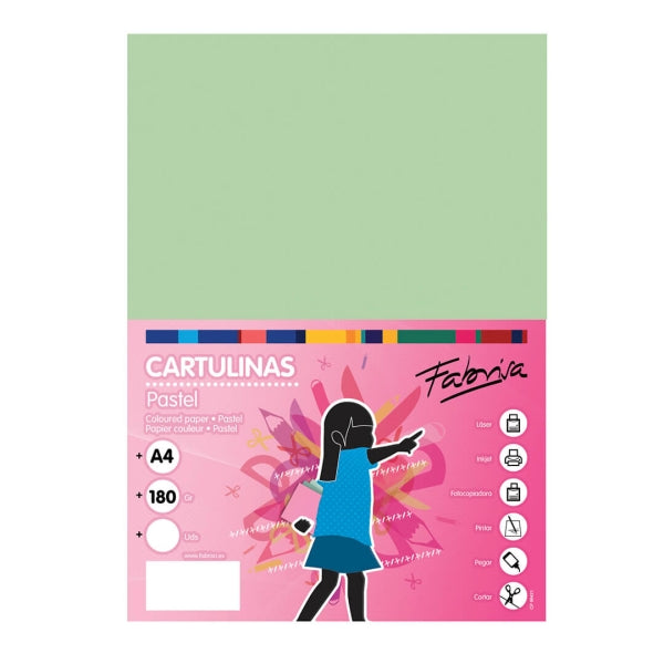 Fabrisa Pack de 50 Cartulinas 180 g/m² - Tamaño A4 - Color Verde Claro