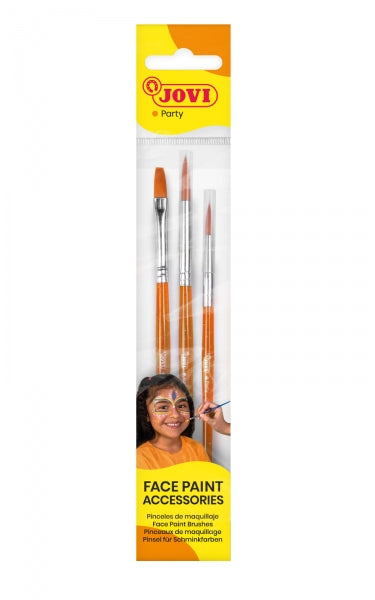 Los pinceles sintéticos de alta calidad JOVI están diseñados para la aplicación de maquillaje sobre la piel. Incluyen tres tamaños de punta (plana, redonda y fina) para cubrir todas las necesidades del maquillador, siendo aptos tanto para cubrir grandes superficies como para perfilar detalles. Estos pinceles son resistentes, ligeros y están perfectamente adaptados al maquillaje Face Paint para una aplicación impecable. Características: -Pinceles sintéticos de alta calidad para la aplicación de maquillaje. -Se incluyen tres tamaños de punta (plana, redonda y fina). -Apto para grandes superficies o perfilar detalles. -Suavidad al contacto con la piel. -Se pueden reutilizar, se lavan con agua y jabón.