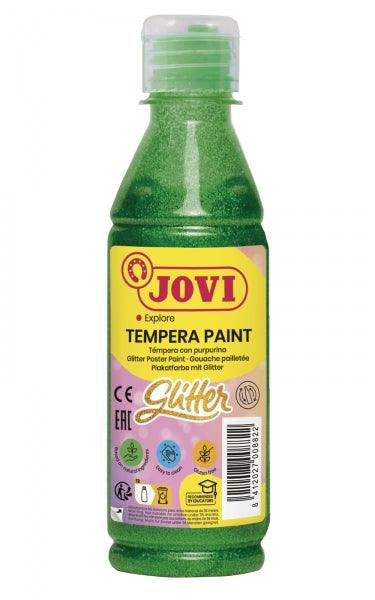 Jovi Glitter Tempera Liquida Base Agua 250ml - Particulas de Purpurina - Excelente Rendimiento - Secado Rapido - Fluidez Optima - Adherencia en Multiples Superficies - Color Verde