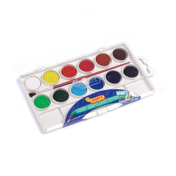 Jovi Pack de 12 Acuarelas en Pastilla + Pincel - Brillantes - Facilmente Mezclables - Colores Surtidos