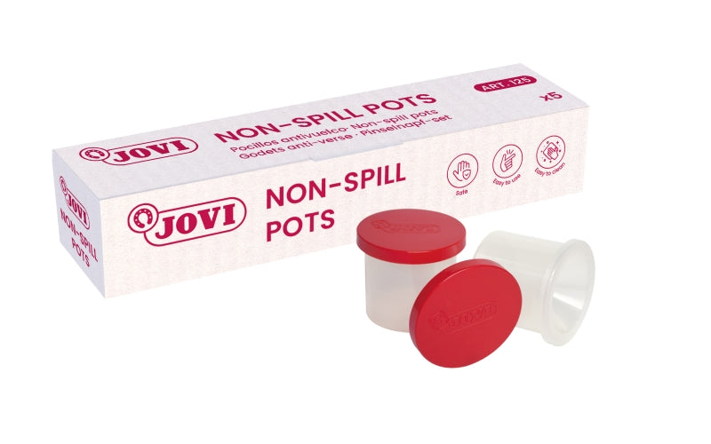 Jovi Pocillo Antivuelco Estuche de 5 Unidades - Tapa Conservadora - Limpieza de Pinceles - Evita Derrames - Color Transparente