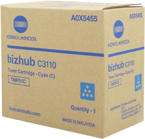 Cartucho de toner original Konica Minolta TNP51 (TNP51C/A0X5455) de alta calidad.