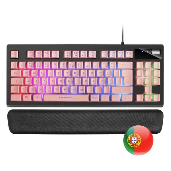 Mars Gaming MKAX Teclado Gaming - Iluminacion RGB 9 Efectos - Diseño Compacto TKL - Tecnologia H-Mech - Control de Volumen Roller - Reposamuñecas Memory Gel - Portugues - Color Negro
