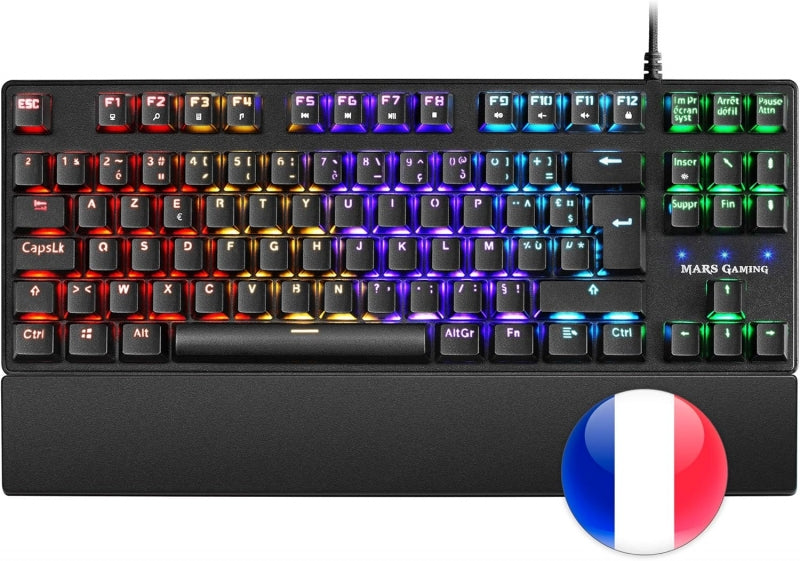 Mars Gaming MKXTKL Teclado Mecanico - Switches OUTEMU SQ - RGB 5 Colores - Diseño TKL Compacto - Reposamuñecas Ergonomico - Antighosting Total - Frances - Color Negro