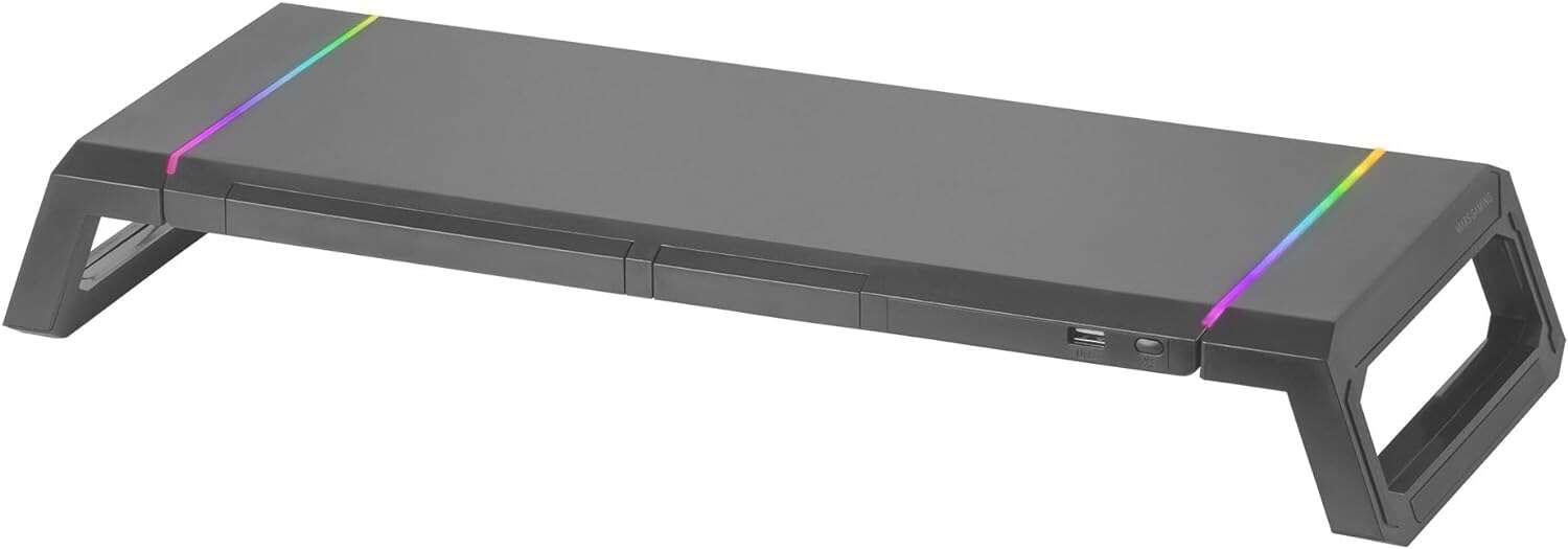 Mars Gaming Soporte Premium para Monitor MGS-ONE - Ajustable 3 Tamaños - Iluminacion Chroma RGB - USB 2.0 - Cajon Almacenaje - Color Negro
