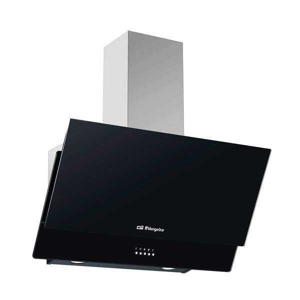 Orbegozo DS 74160 N Campana Extractora Decorativa - Potente Motor de 105W - Capacidad de Extraccion de 378.6 M³/H - Luces LED y Elegante Diseño en Cristal Negro