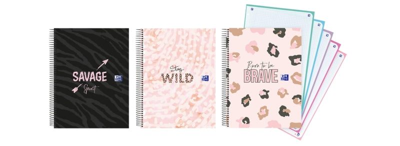 Oxford Animal Print A4+ Europeanbook 5 Tapa Extradura - 5x5 Cuadricula - 120 Hojas - 3 Modelos - Cantidad: 5