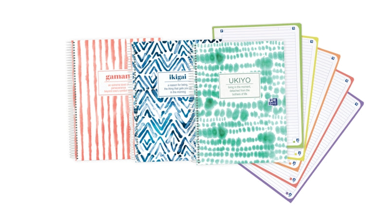 El Oxford Japandi A4+ Europeanbook 5 es un cuaderno de tamaño A4+ con tapa extradura y diseño Japandi.