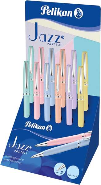 Pelikan Expositor 12 Boligrafos Jazz "Pastel" - Punta Fina - Tinta de Calidad - Colores Pastel