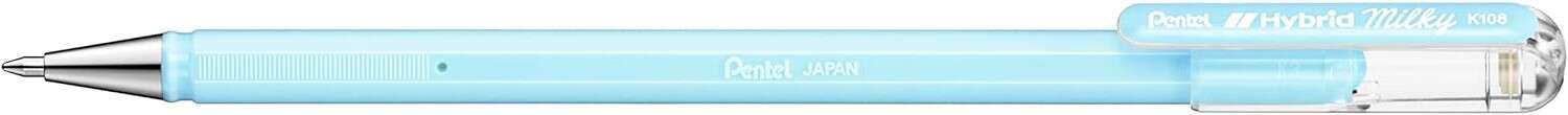Pentel Hybrid Milky Boligrafo de Bola - Punta Fina 0.8mm - Trazo 0.4mm - Tinta de Gel Opaca - Color Azul Pastel - Cantidad: 12